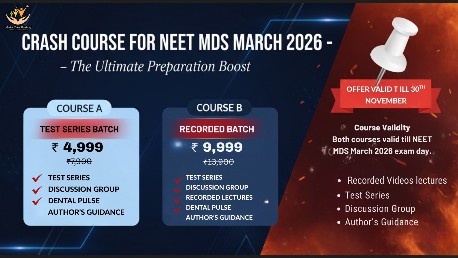 📌 Both Course A and Course B are valid till NEET MDS March 2026 exam day.