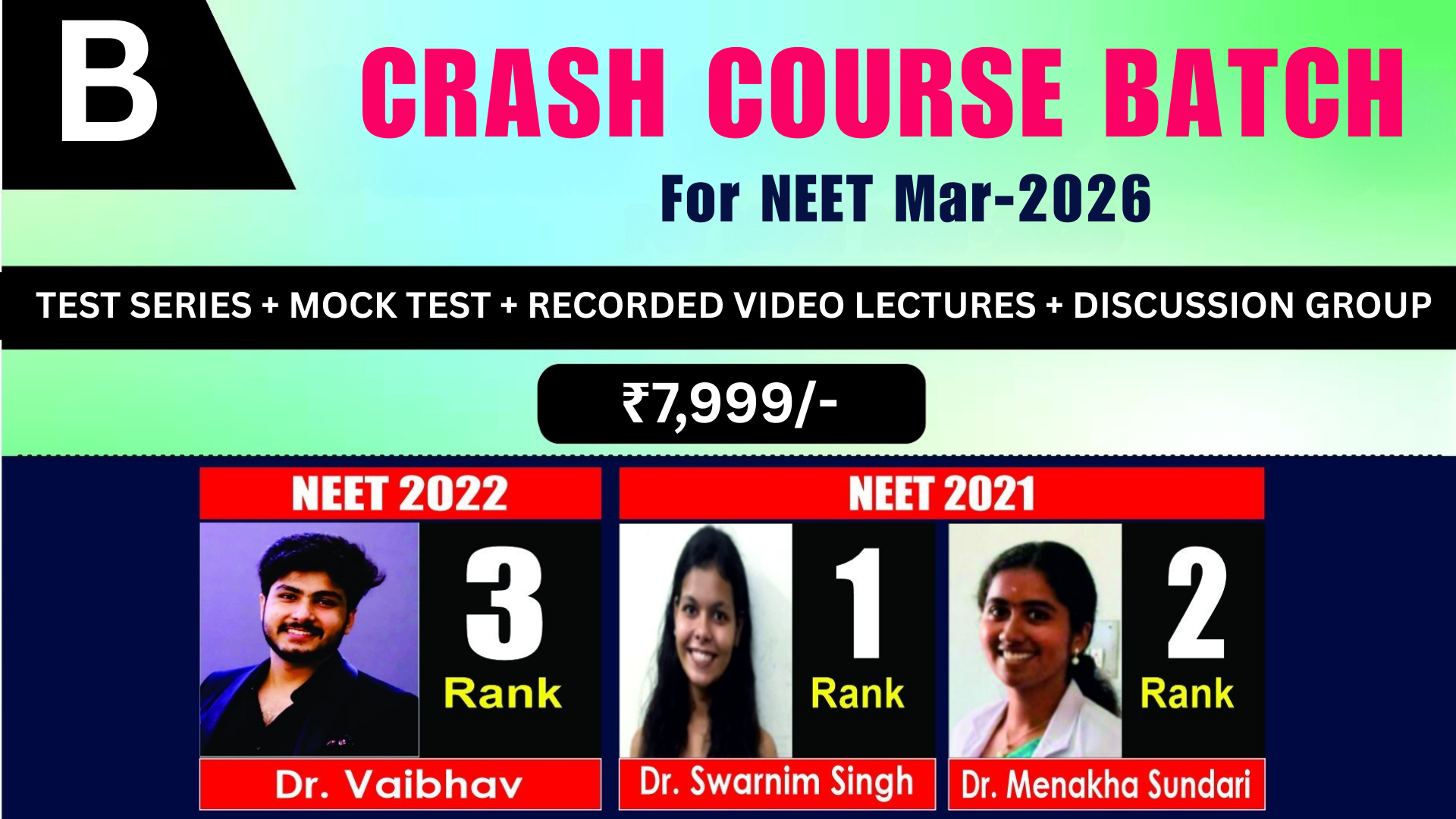 Crash Course For NEET-MAR 2026 (Course B) Fee: ₹7,999/-Rs